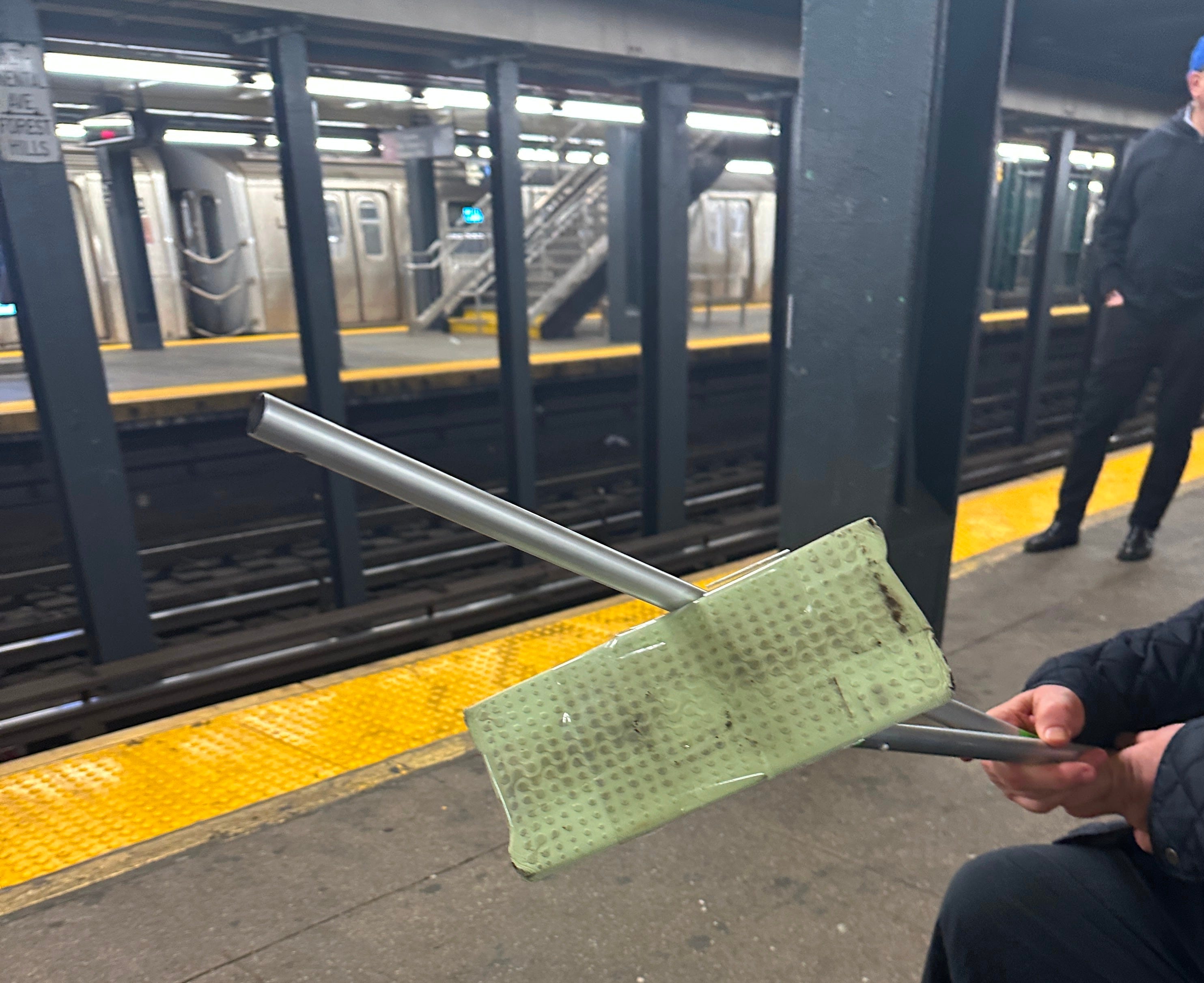So down into the subway I went to wait beside the track until a man in an orange vest carrying a VERY long pole with a grabby thing would appear.